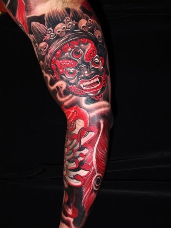 传统花腿纹身--18张传统风格的大花腿纹身图案作品