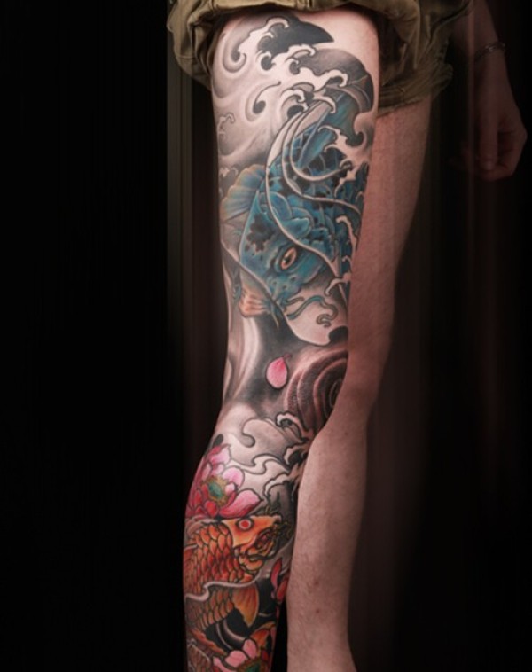 腿部鳌鱼纹身图案_腿部纹身图案大全_纹身图吧