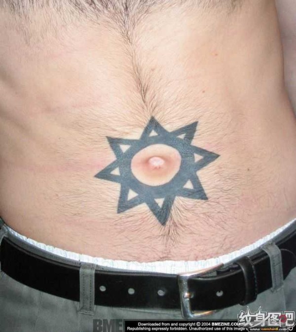 肚脐上的黑色八角形图腾纹身
