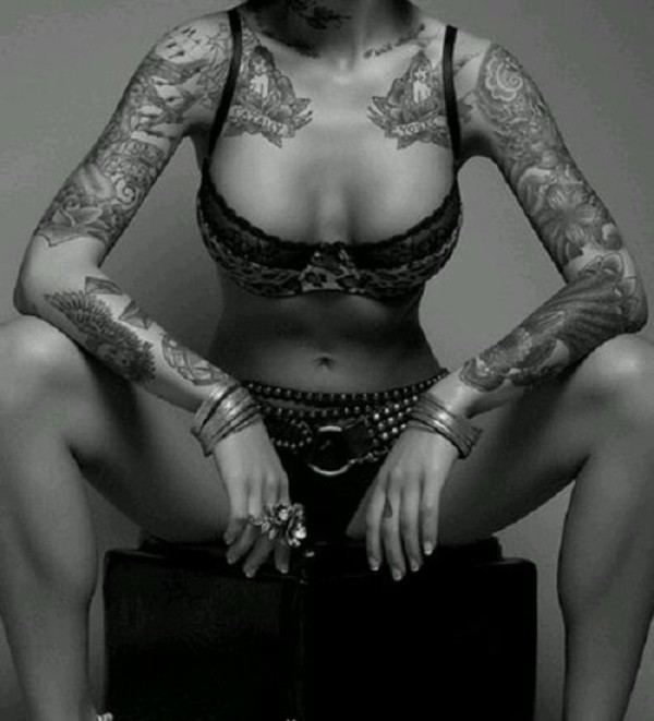 时尚美女的花臂纹身