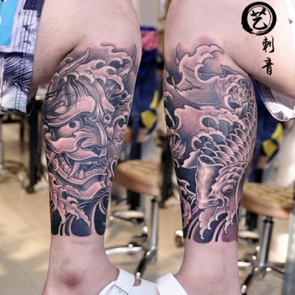 般若 鲤鱼包小腿纹身