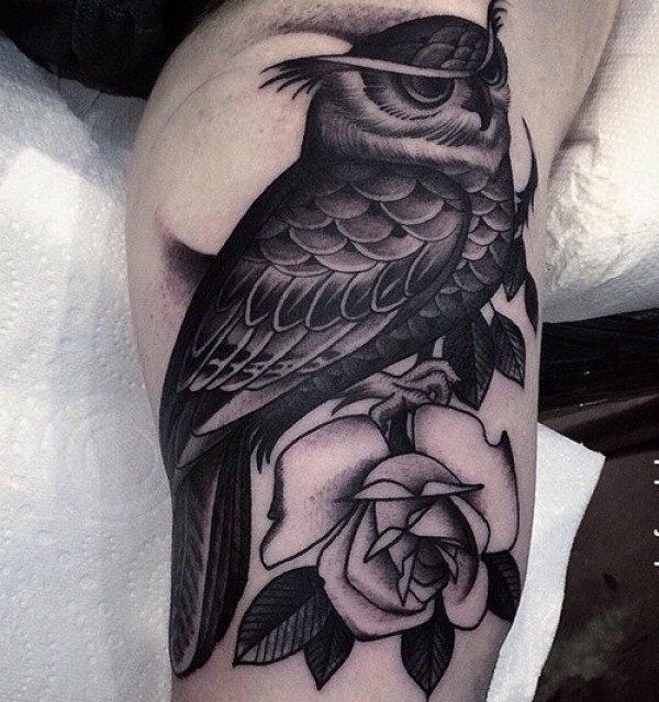 黑灰色玫瑰花和骷髅头纹身图片手稿