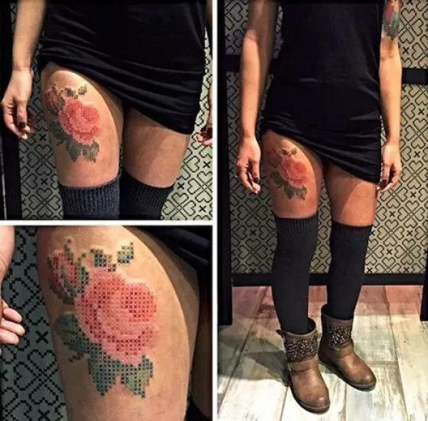 传统花腿纹身--18张传统风格的大花腿纹身图案作品