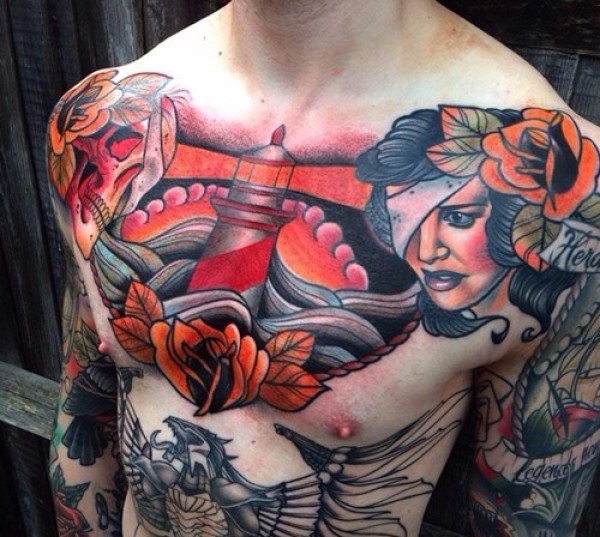 男性大花胸_42张优秀的男性大花胸纹身图案图片