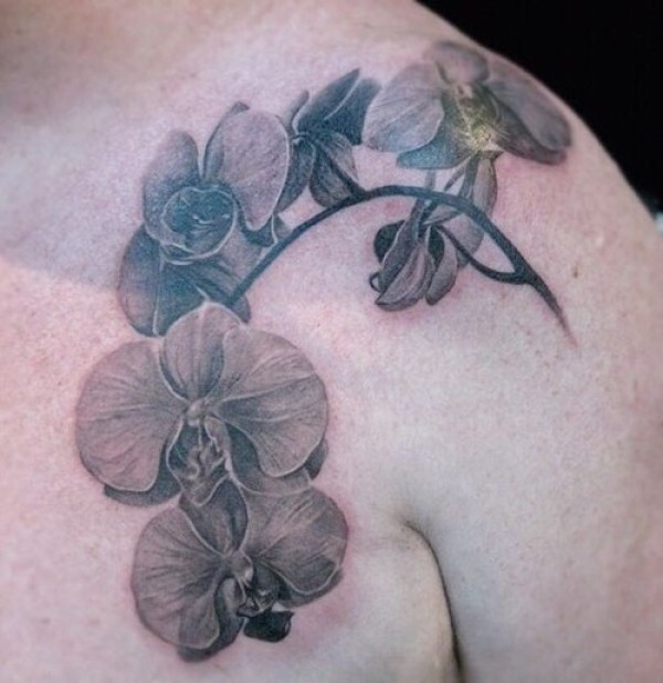 女性肩膀上多款漂亮的花朵纹身图案