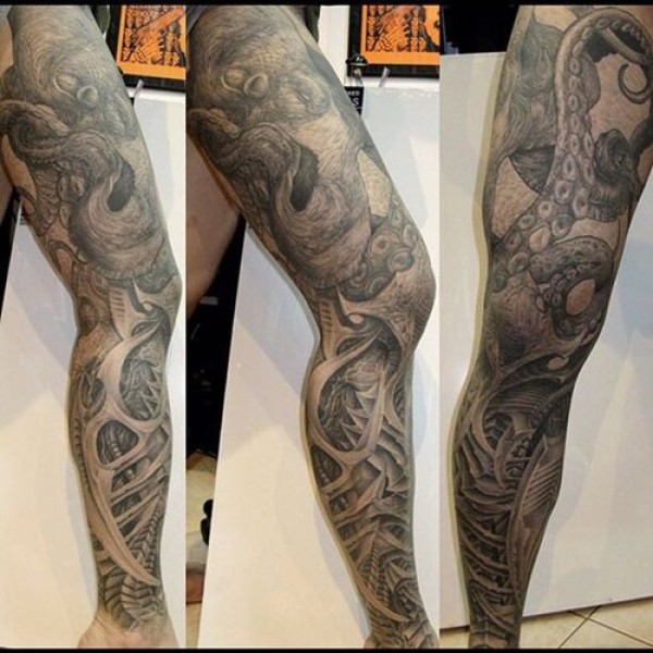 花腿纹身--一组大黑腿纹身图案作品欣赏