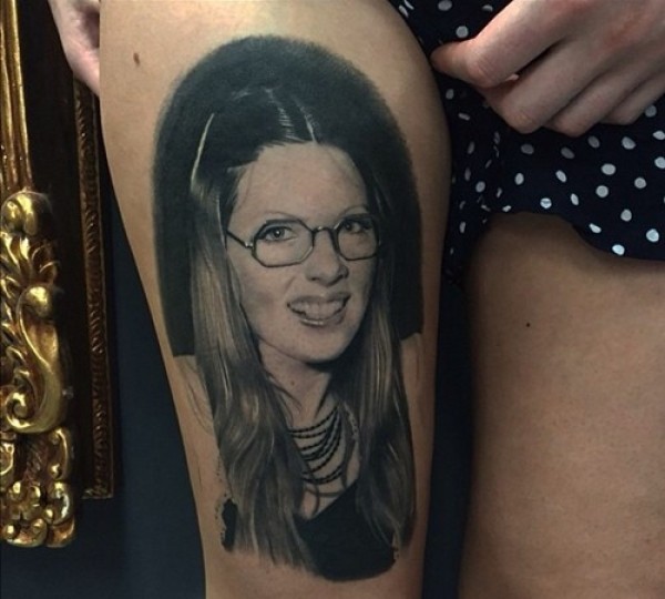 清纯女孩腿上可爱肖像纹身图片_肖像纹身图案大全_纹身图吧