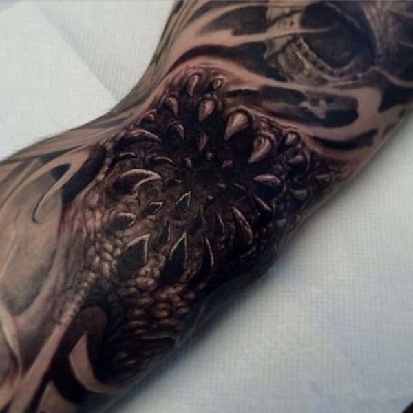 超帅时尚的黑灰骷髅与蛇纹身图案