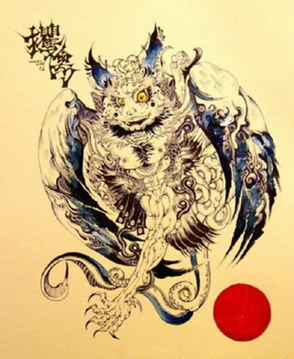 传统艺妓般若纹身图案手稿