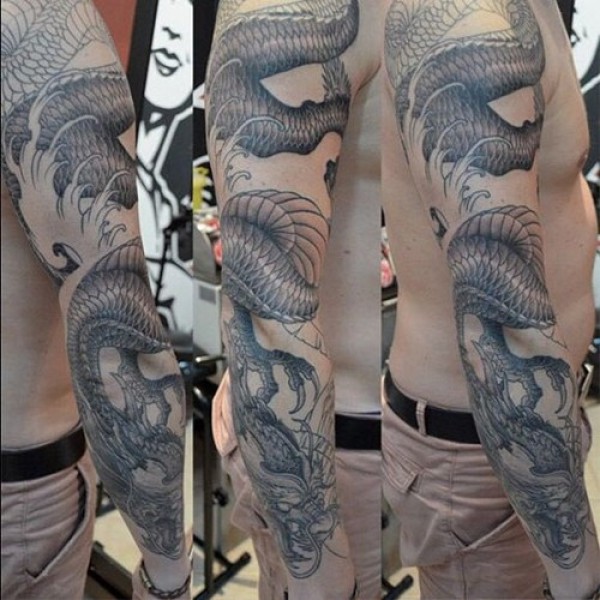 日式手彫刺青作品—半甲龙很感谢客户认可手彫刺青,手彫是日本纹身的手工雕刻技术,时间可以追溯到日本17世纪的江户时代。19世纪,手彫技术被日本黑帮挪用,被用作入会仪式,象征着从此就是江湖中人。在日式传统