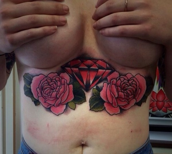 女性大花胸纹身_43张霸气漂亮的女性大花胸纹身图案作品