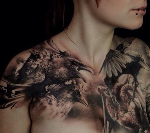 女性大花胸纹身_43张霸气漂亮的女性大花胸纹身图案作品