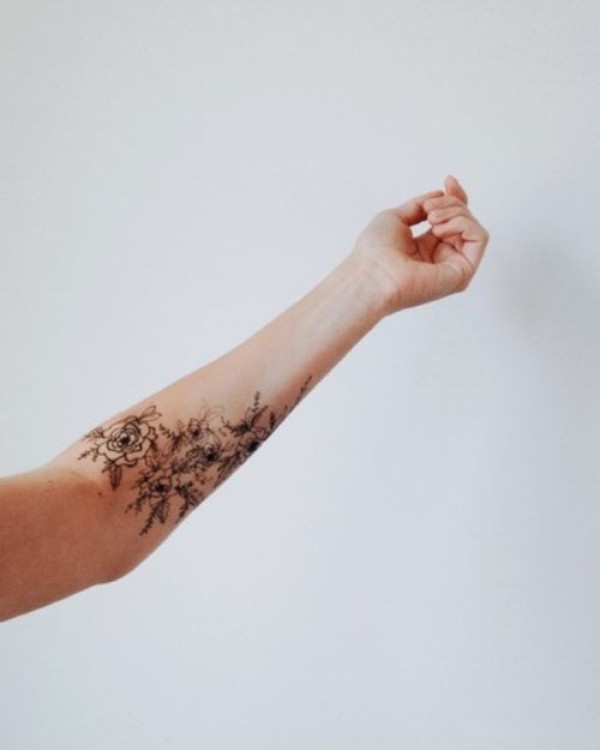 欧美玫瑰纹身 男生手臂上花朵纹身图片