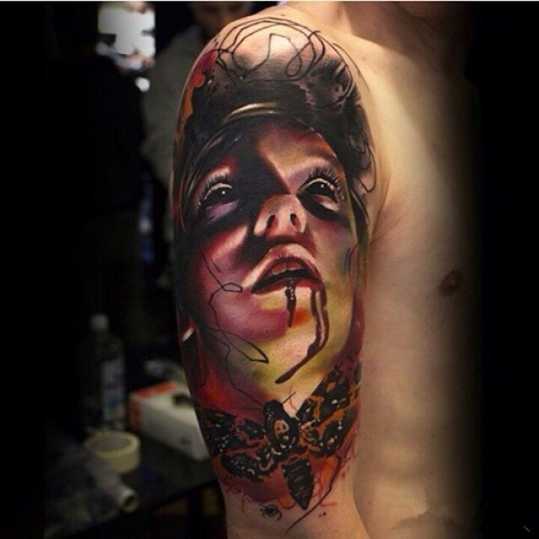 女性肩部肖像刺青_肖像纹身图案大全_纹身图吧