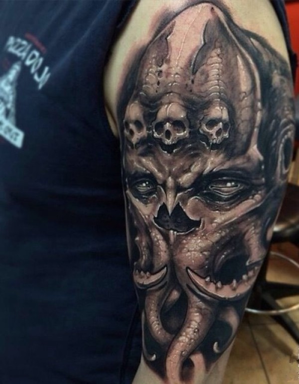 超帅时尚的黑灰骷髅与蛇纹身图案