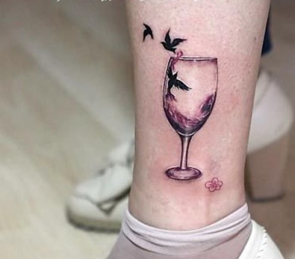 唯美的小鸟腿部纹身