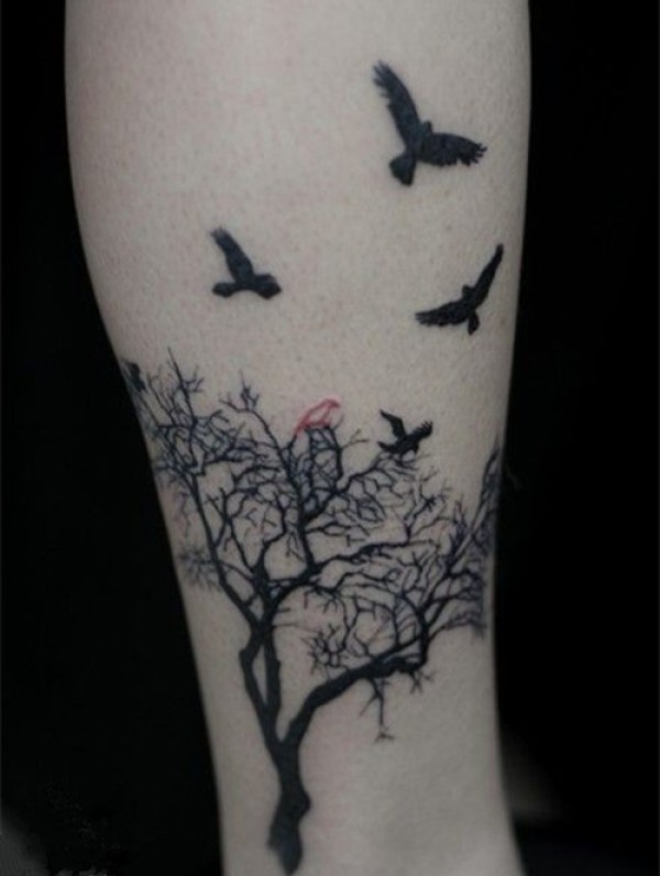 唯美的小鸟腿部纹身