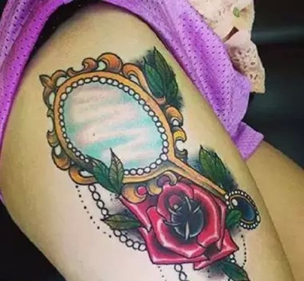 女生镜子图案纹身
