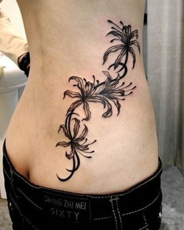 女性腰部莲花花纹刺青_腰部纹身图案大全_纹身图吧