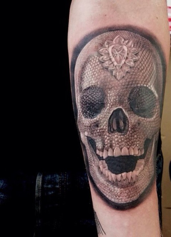 超帅时尚的黑灰骷髅与蛇纹身图案