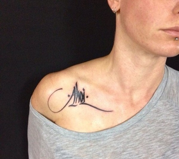 女生肩骨部纹身