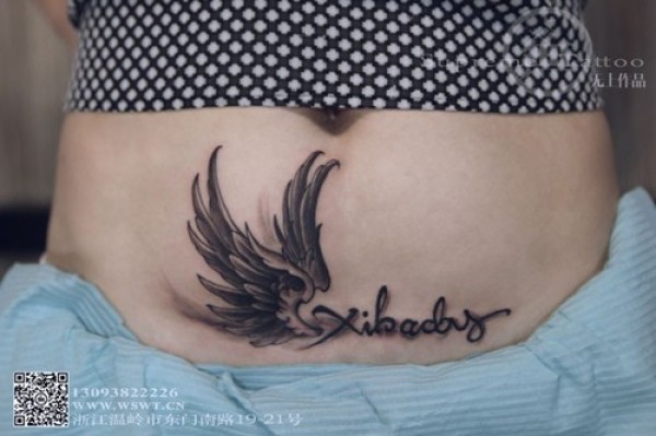 腹部翅膀纹身 遮盖疤痕 无上纹图出品