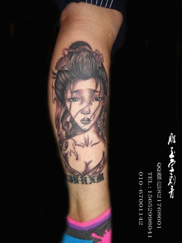 传统花腿纹身--18张传统风格的大花腿纹身图案作品