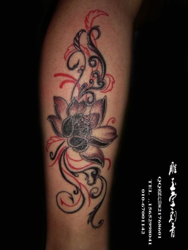 传统鲤鱼花小腿纹身_腿部纹身图案大全_纹身图吧