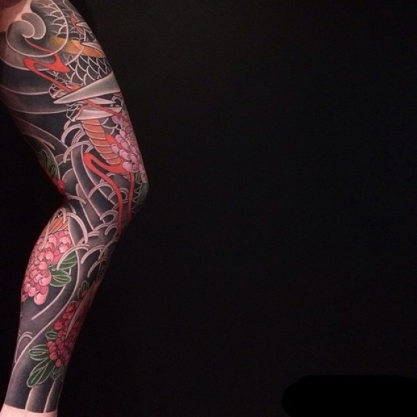 传统花腿纹身--18张传统风格的大花腿纹身图案作品