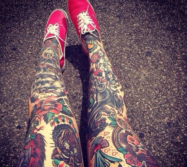 传统花腿纹身--18张传统风格的大花腿纹身图案作品