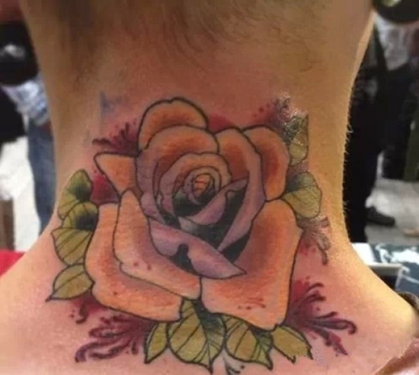 个性时尚的脖子上的花朵纹身