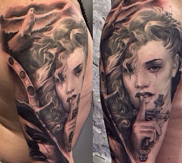 女性肩部肖像刺青_肖像纹身图案大全_纹身图吧