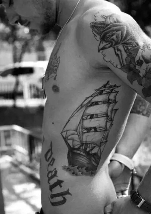 腰腹部帆船纹身