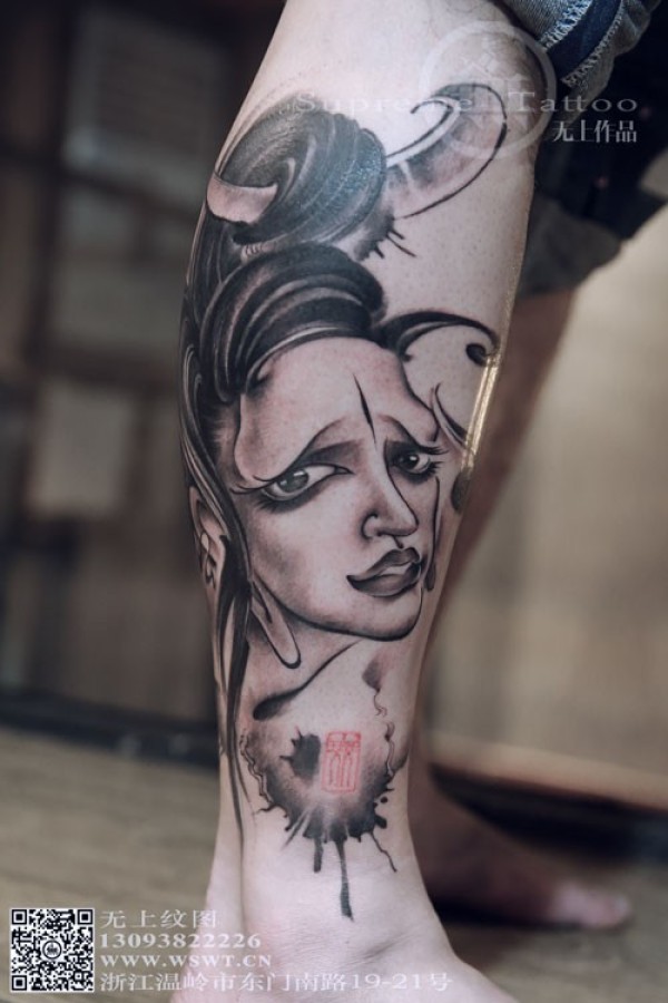 花腿纹身--一组大黑腿纹身图案作品欣赏