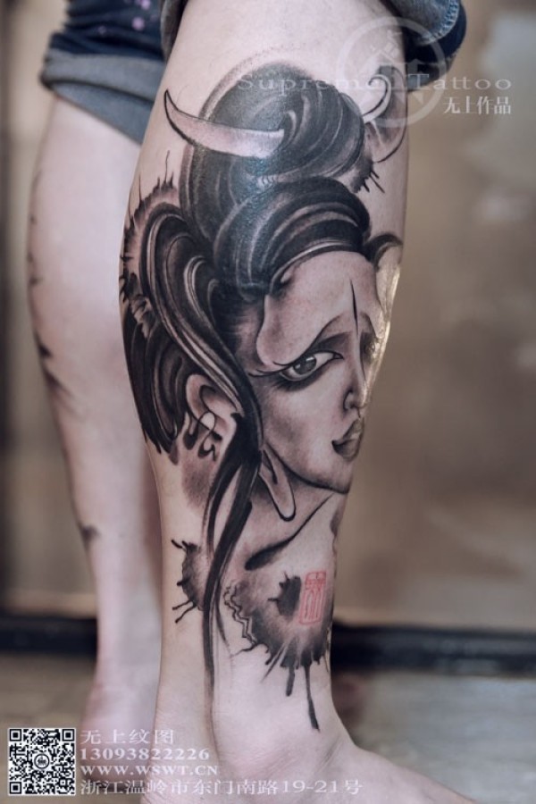 小腿艺妓纹身图案