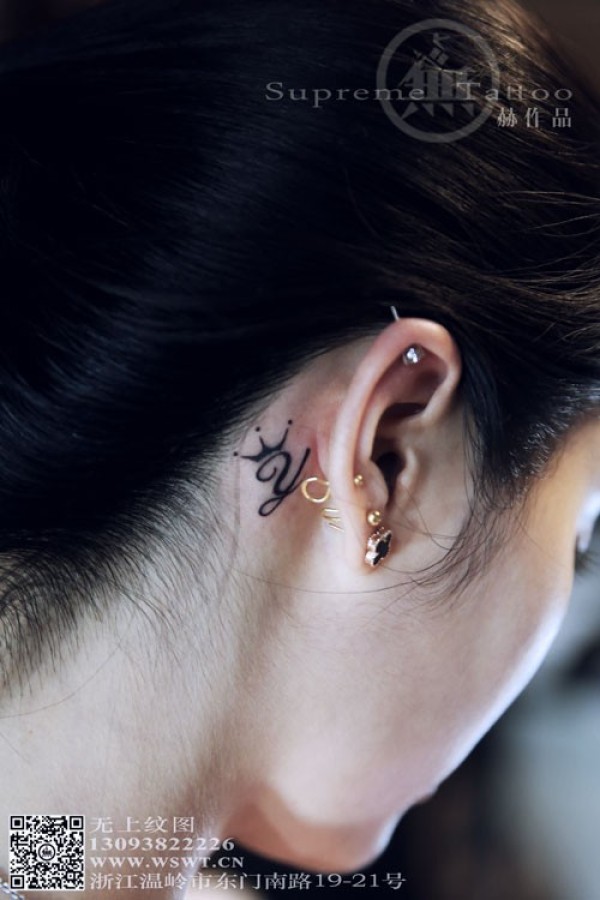 多款女生耳后黑色线条素描文艺小清新小图案纹身图案
