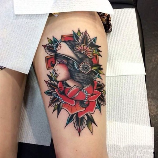 传统花腿纹身--18张传统风格的大花腿纹身图案作品