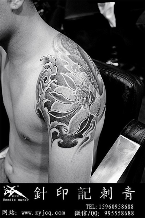 女生肩花纹身_15张女性双肩对称的肩花纹身图案作品图片
