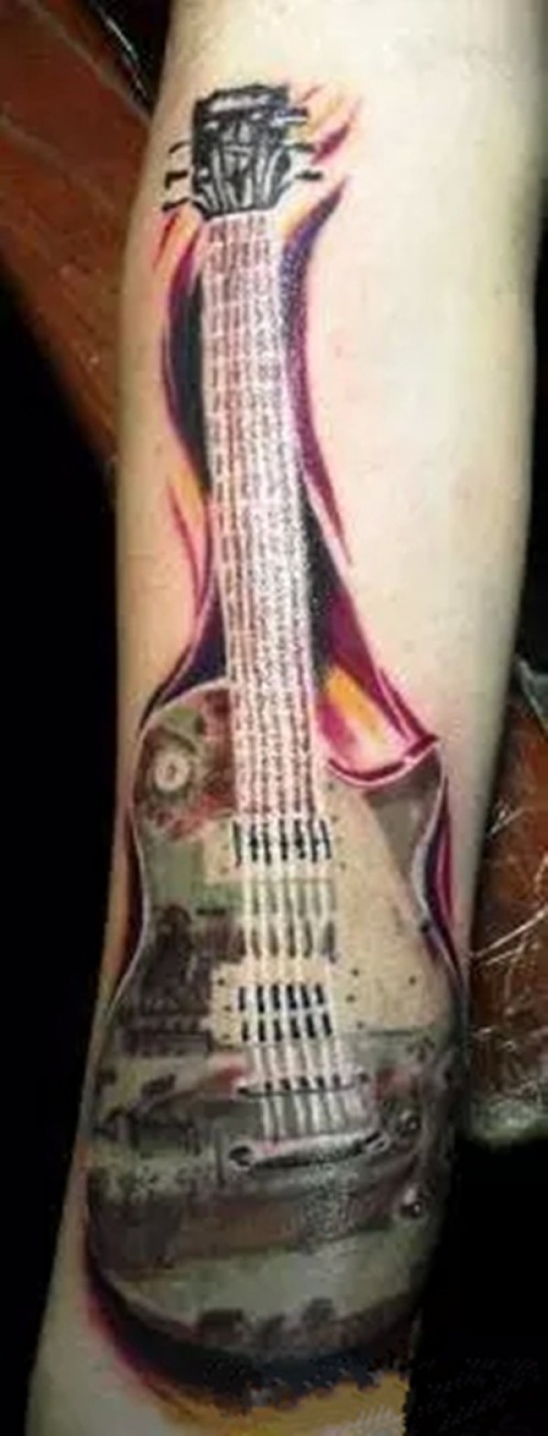 一套逼真的手臂吉他纹身