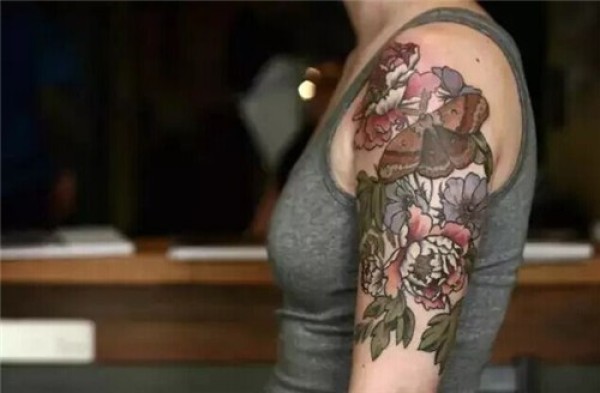 后肩唯美花藤英文图案图片_植物纹身图案大全_纹身图吧