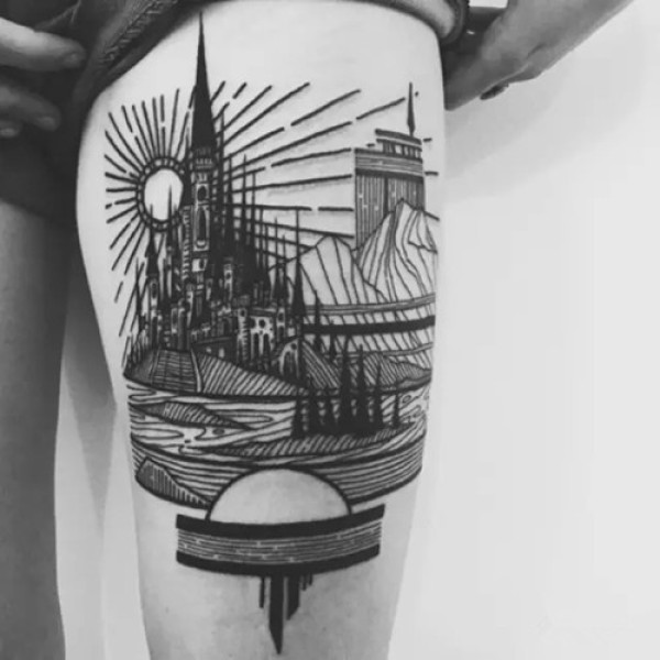 花腿纹身--一组大黑腿纹身图案作品欣赏