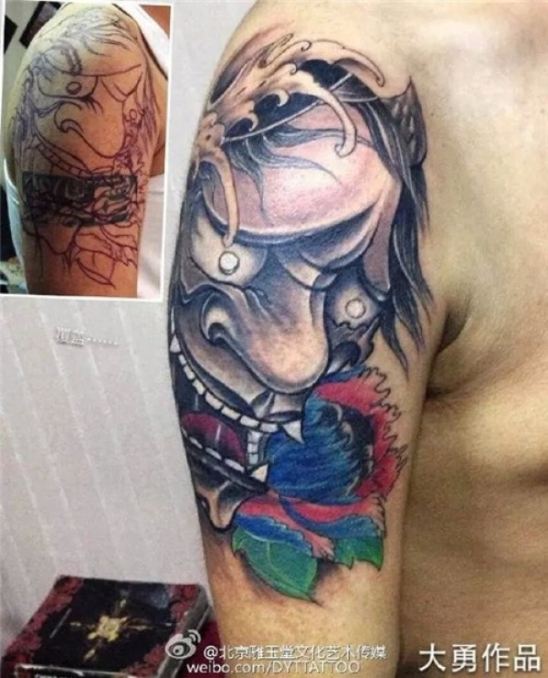 能面万媚纹身手稿_52张日式能剧面具纹身手稿图案素材欣赏
