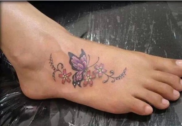 清新小桃花脚踝纹身_脚部纹身图案大全_纹身图吧