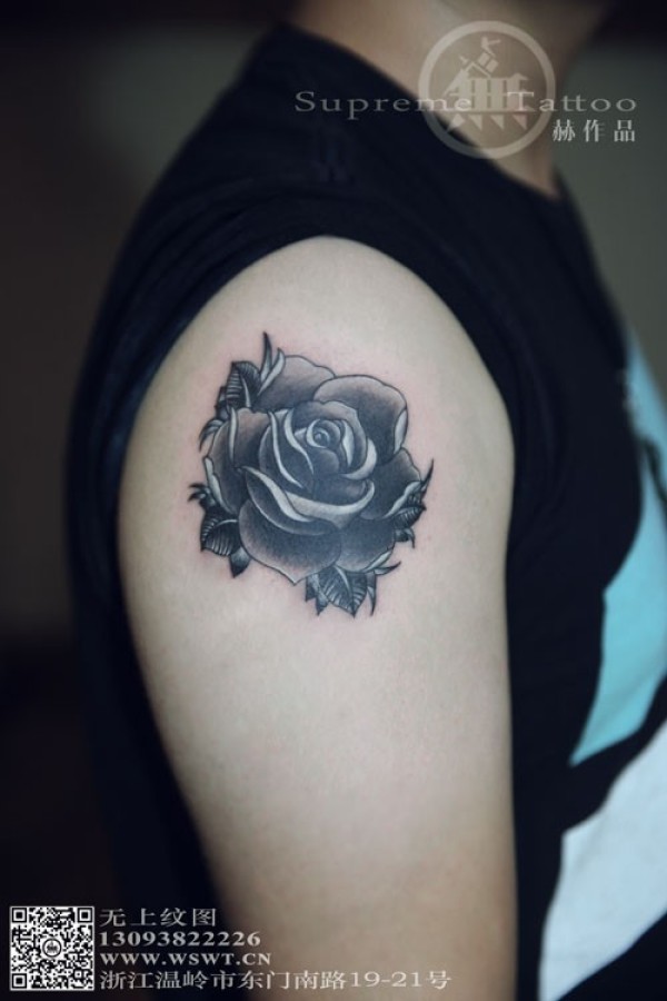 School风格黑灰玫瑰纹身 花臂纹身 无上出品