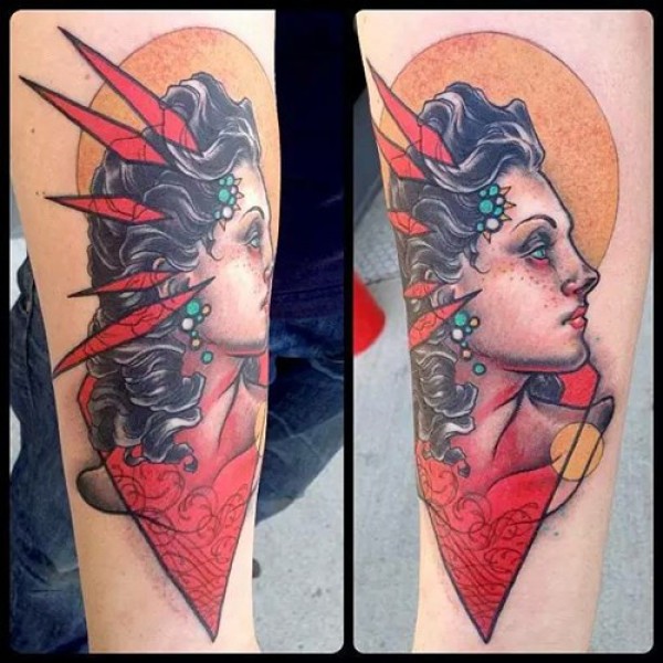oldschool风格的拼接花臂纹身作品欣赏