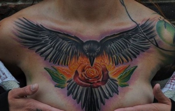 女性大花胸纹身_43张霸气漂亮的女性大花胸纹身图案作品