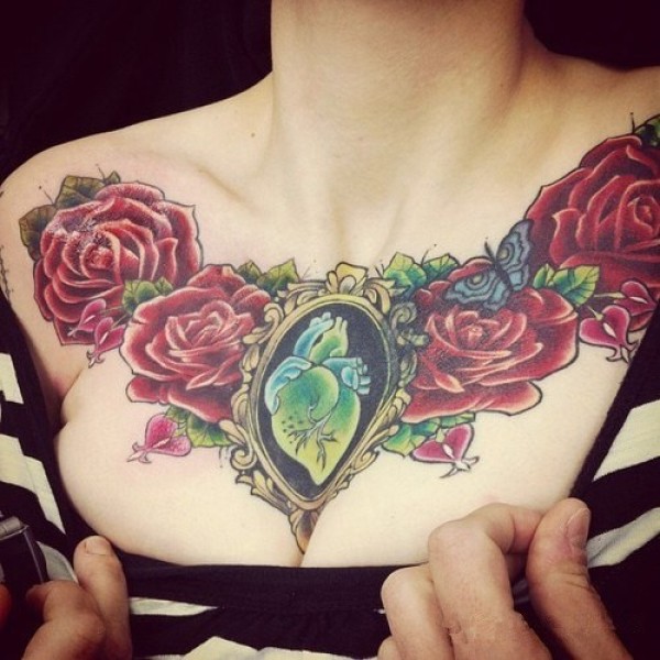 女性大花胸纹身_43张霸气漂亮的女性大花胸纹身图案作品