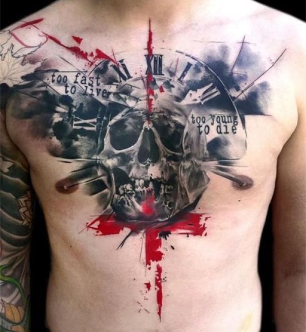 纹身图案胸部男 简洁大方的男生胸部纹身图案