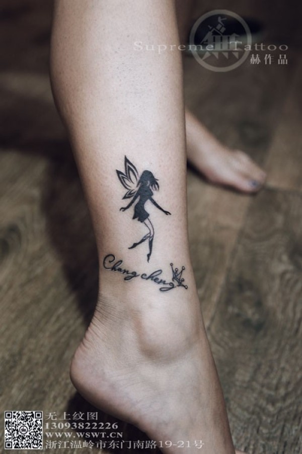 精致小精灵图案纹身 女生小腿纹身 美女纹身