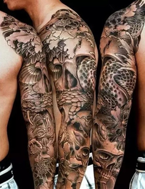 手臂莲花蛇纹身图案_臂部纹身图案大全_纹身图吧